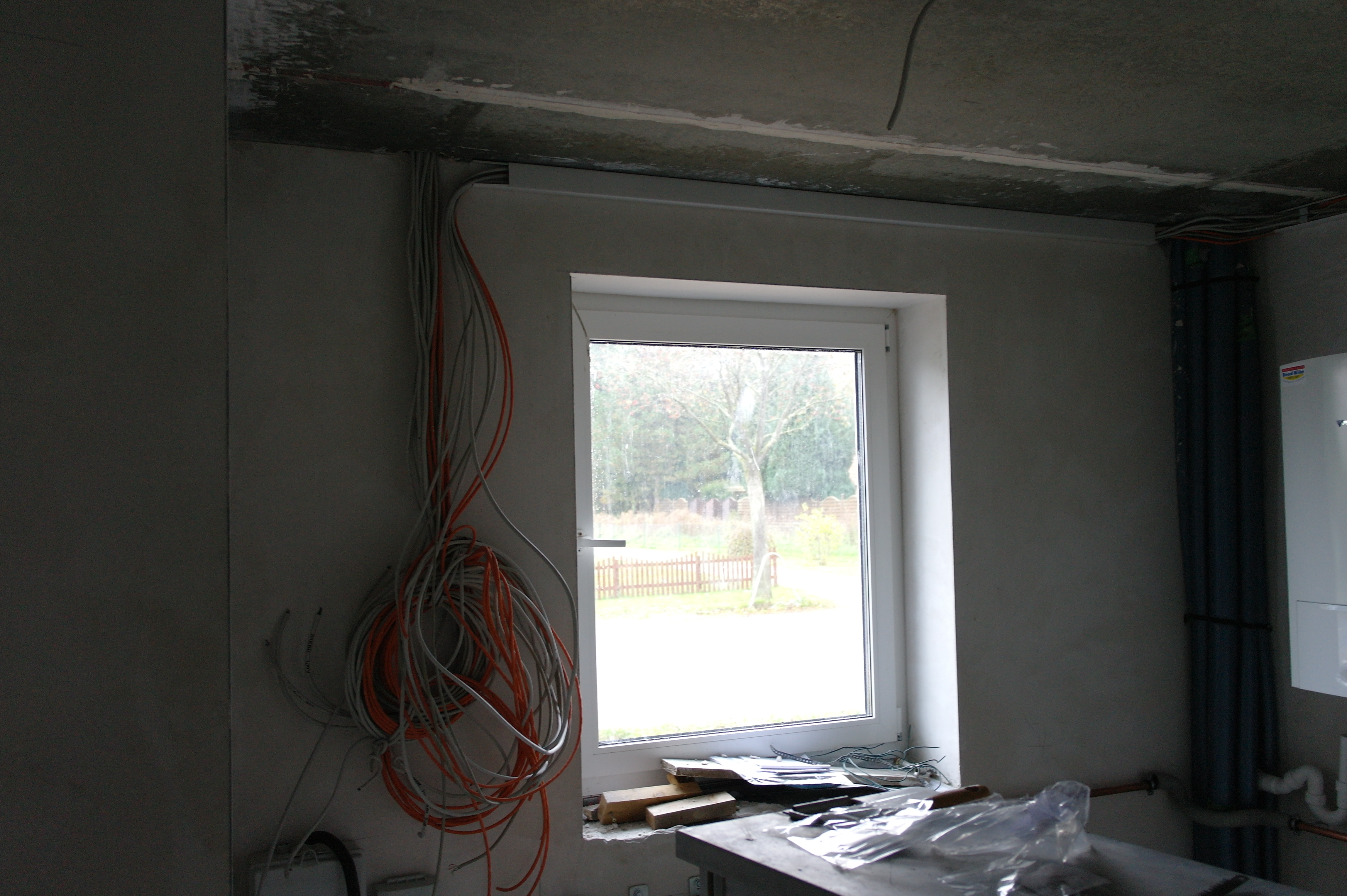 - Verspachteln der Rigips-Platten und Verlegen der Elektrik
