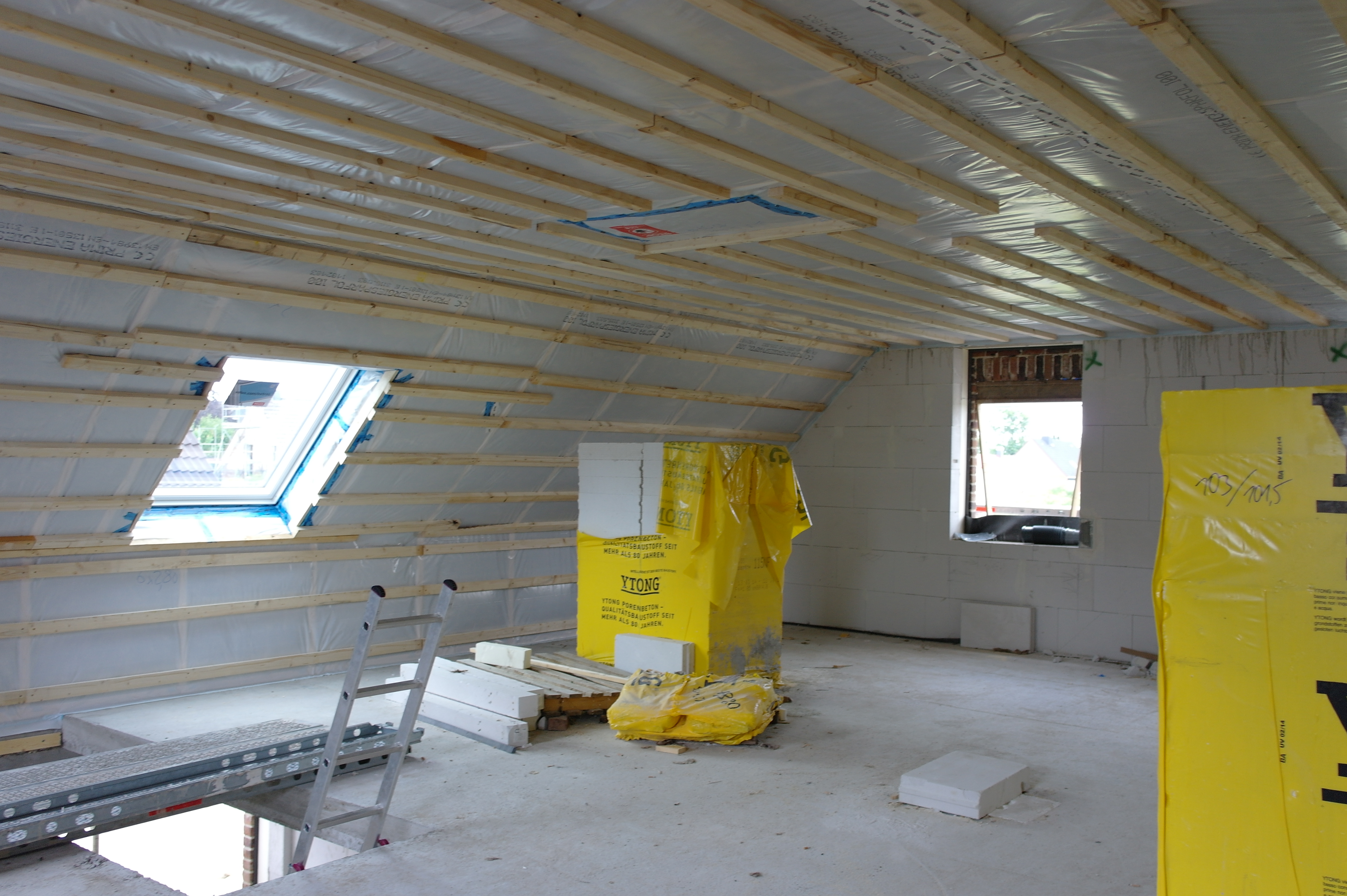Tipp: Bei einem massiv gemauerten Haus empfehle ich immer eine massive Zimmerdecke einzubauen. Ob Fertigdecke oder verschalt und gegossen ist hierbei egal. Mindestens 25cm stark sollte sie jedoch sein. Bei einem Haus aus Holz sollte viel in eine sehr gut gedämmte und starke Holzdecke investiert werden.